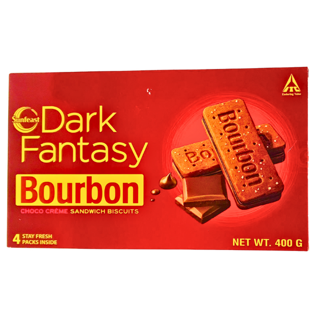 Enjoy Sunfeast Dark Fantasy Bourbon Biscuits, a popular choice from our Biscuits range. These delicious biscuits are perfect for everyday snacking or to accompany a cup of tea. At 400g, this pack offers great value for households across the UK. Treat yourself or share with family and friends.