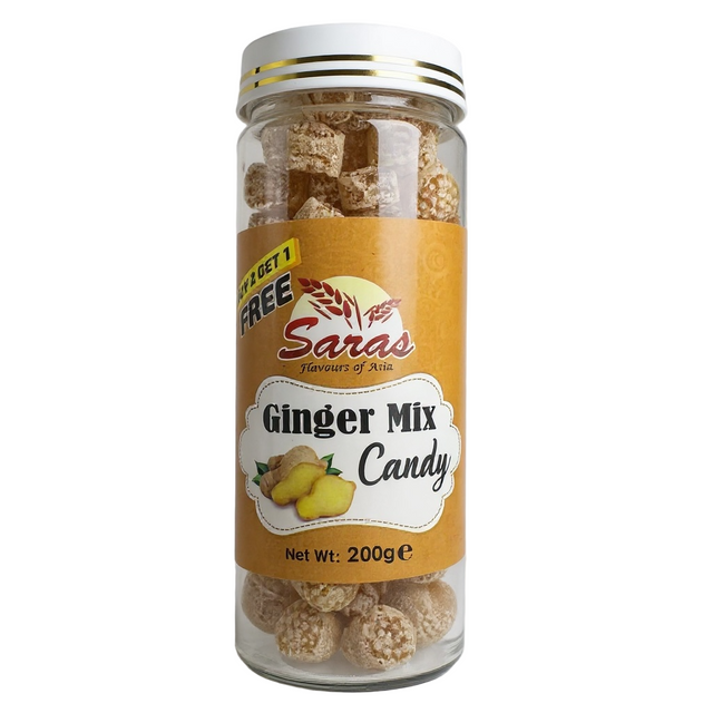 Enjoy the refreshing taste of Saras Ginger Mix Candy. This 200g pack offers a delightful blend of ginger flavour, perfect for a sweet after-meal treat. Ideal for those who appreciate a touch of spice in their sweets, this candy is a popular choice in our Mukhwas range.