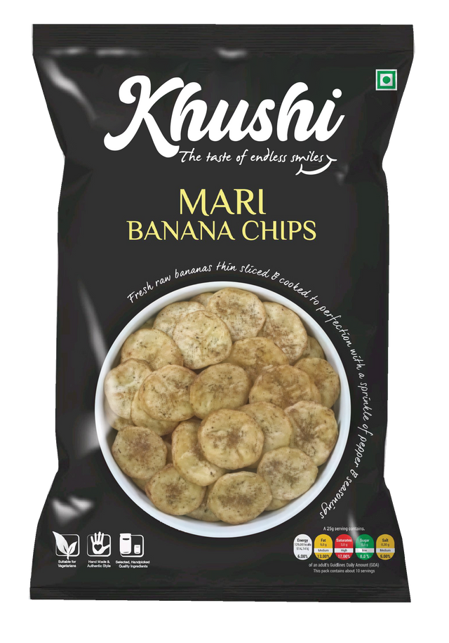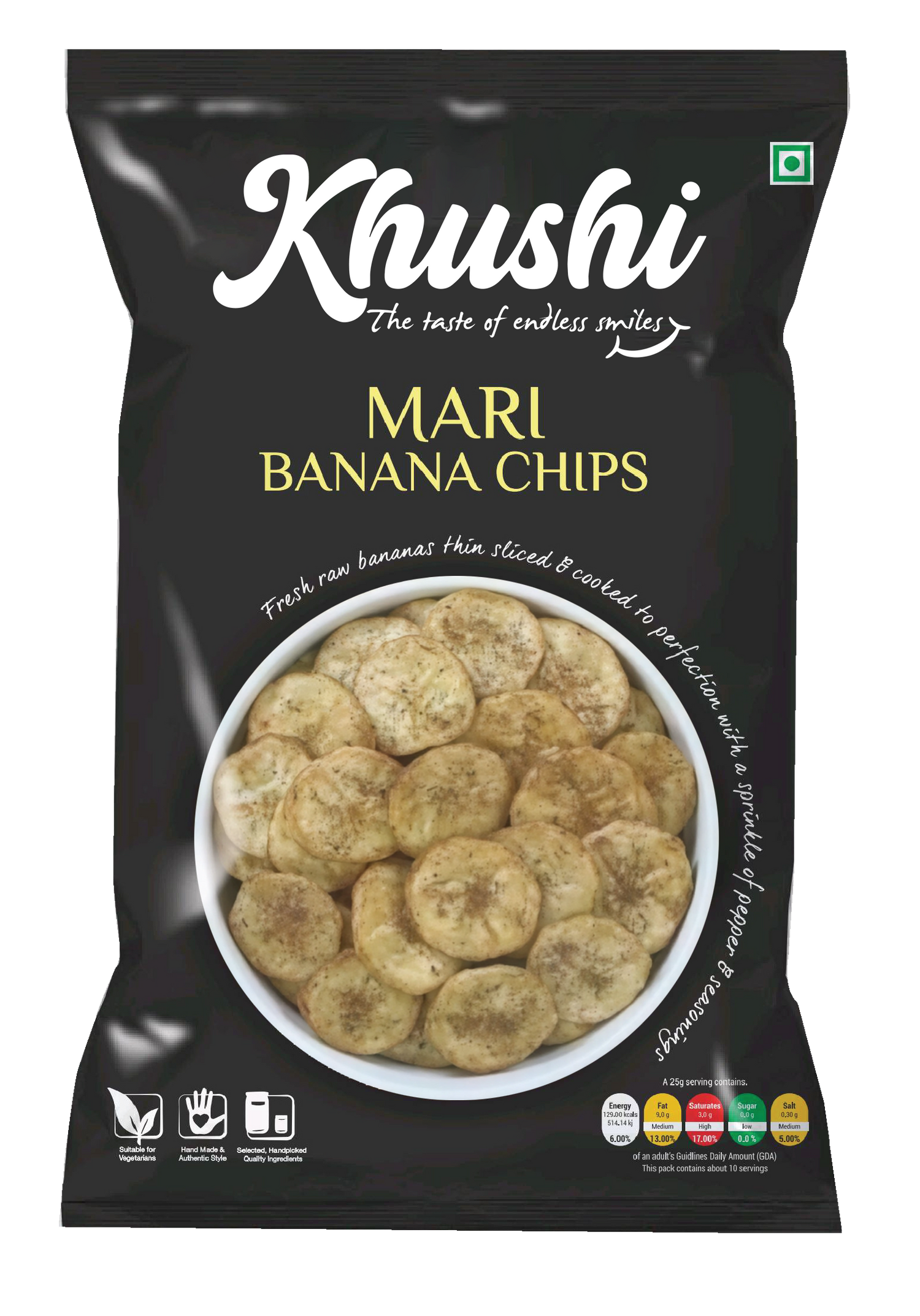 Enjoy Khushi Pepper Banana Chips, a delightful snack from India. These crisps offer a unique flavour that's perfect for any occasion. Whether you're looking for a tasty treat to share or a personal indulgence, these 180g banana chips are a great choice. They are a popular addition to our Indian Snacks, specifically within the Chips & Crisps selection.