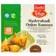 Enjoy delicious Swetha Hyderabadi Onion Samosas, perfect for a quick snack. This pack contains 12 pieces, ready to be fried or baked. A convenient addition to your freezer, these samosas are ideal for parties or a tasty treat for the family.
