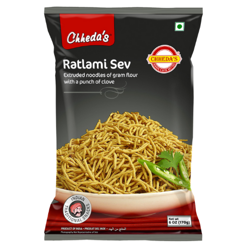 Enjoy Chheda's Ratlami Sev, a popular Indian snack. This 170g pack offers a tasty treat perfect for sharing or enjoying on your own. Suitable for those who enjoy traditional Indian savouries, it's a delightful addition to your snack collection.