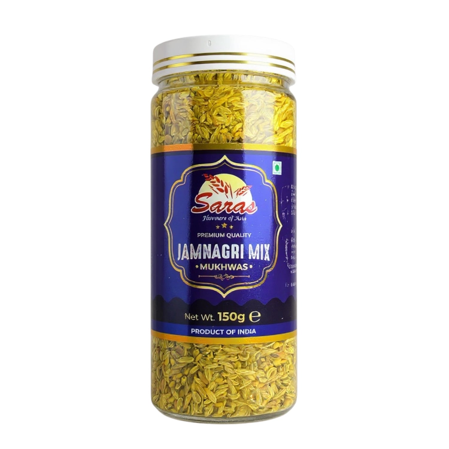 Saras Jamnagari Mukhwas is a popular post-meal digestive. This 150g pack offers a traditional Indian blend, perfect for refreshing your palate after a meal. Enjoy this delightful mix as a staple accompaniment to your dining experience.