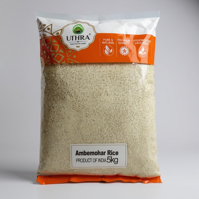 Uthra Ambemohar Rice is a popular choice for everyday cooking. This 5kg pack offers a good supply for your kitchen. It's a versatile rice variety suitable for a range of Indian dishes, bringing a familiar nutty aroma and soft texture to your meals. Ideal for those seeking quality rice for their culinary creations.