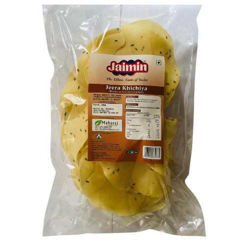 Jaimin Jeera Khichiya papad are a popular Indian snack. Made with cumin (jeera), these crisp papads are perfect for enjoying as a starter or accompaniment to your meal. This 200g pack offers a convenient way to experience this traditional Indian papad.